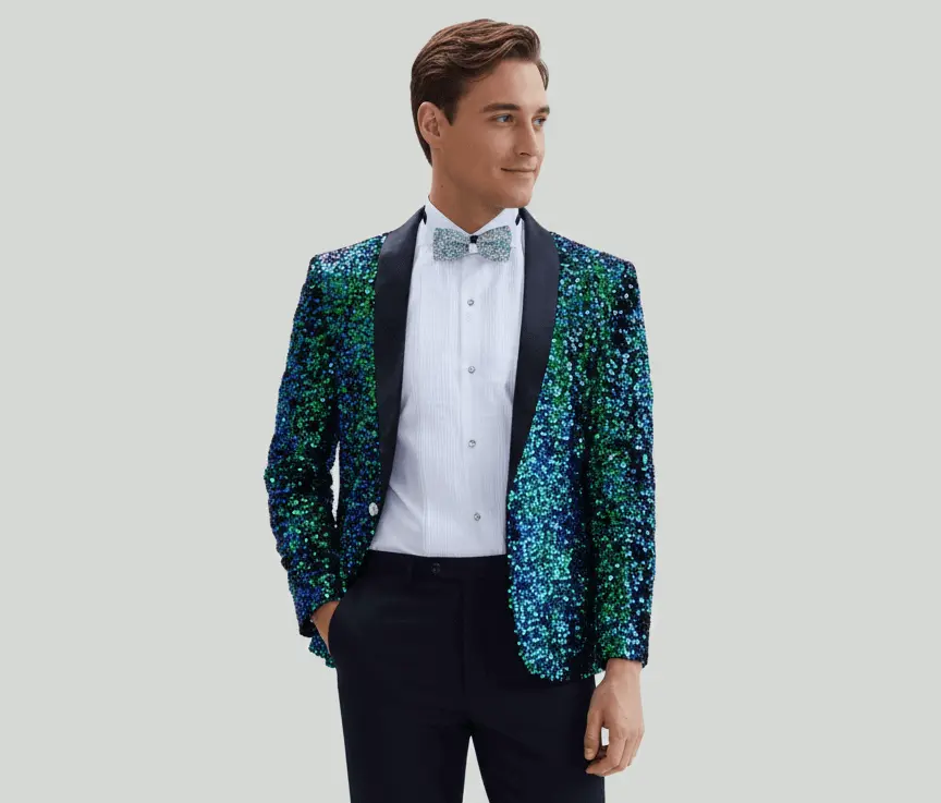 7. Blue-Green Sequin Blazer with Bow Tie